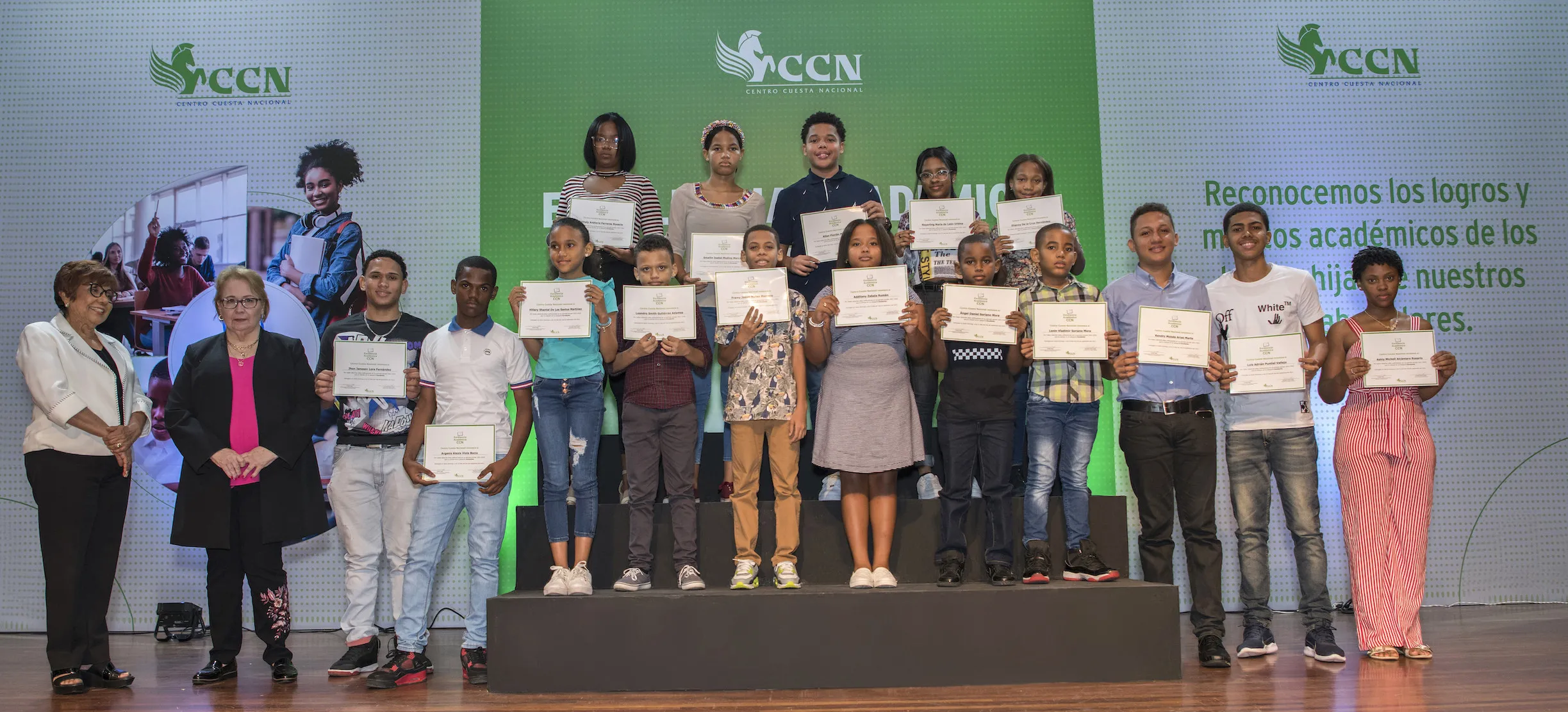En una actividad celebrada en el auditórium Monseñor Amancio Escapa en Casa San Pablo, y bajo su programa Excelencia Académica CCN, Centro Cuesta Nacional premió a los hijos de los colaboradores con calificaciones meritorias. Amalia Vega, vicepresidente de Comunicación Corporativa y Relaciones Institucionales de Centro Cuesta Nacional, dijo: “Los hijos de nuestros colaboradores son parte del futuro de nuestra sociedad, por eso nos enorgullece que desde temprana edad desarrollen valores de compromiso, esfuerzo y dedicación, que hoy les reconocemos”.