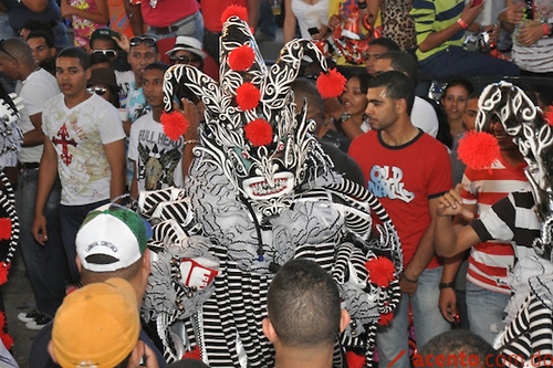 El traje es obra del diseñador Luís Rivas, quien explicó que este año el impactante disfraz, color blanco y negro, no utiliza brillo ni lentejuelas, pues busca romper con las telas que tradicionalmente se usan en el carnaval, usando materiales totalmente diferentes. “Es un personaje alegre que tiene muchas características del Bufón, un personaje jocoso que entretiene, a la vez que es muy fresco a la vista”, agregó.