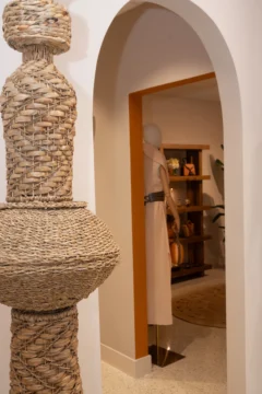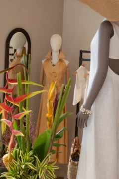 La tienda presenta una selección de prendas y accesorios que reflejan el estilo característico de la marca, basado en siluetas elegantes, textiles de alta calidad y una estética inspirada en la feminidad caribeña.