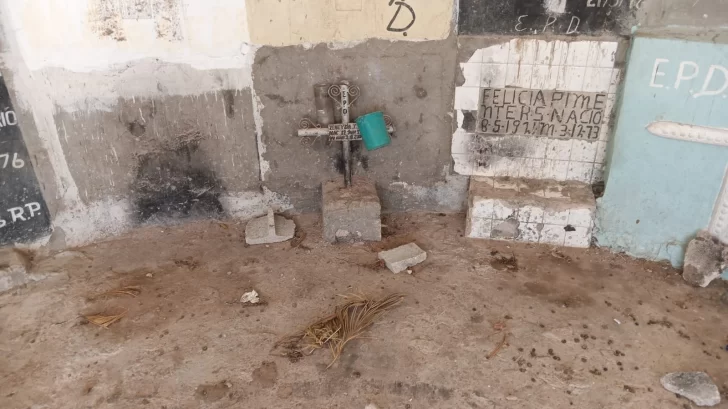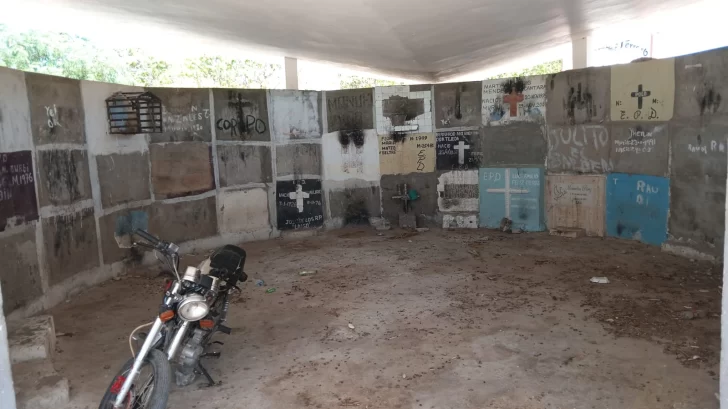 El cementerio es un botadero de muertos. Un sinfín de tumbas dispuestas de manera anárquica, robadas, profanadas, entre pasillos angostos llenos de matojos, piedras, botellas, vidrios, residuos de cigarros, heces de chivos y perros y meaderos de antisociales.