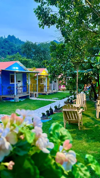 Dispone de tres tipos de alojamientos: El Bungalow o casitas de colores con capacidad para seis personas, el Glamping especialmente para parejas y las casas de campañas para los más aventureros. El lugar tiene capacidad para alojar hasta 80 personas, pero a partir de enero podrán alojar a 100 visitantes.